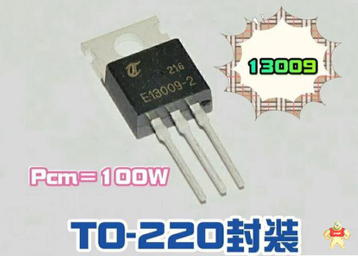 TO-220封装的13009的体积较小,其Pcm为100W,其余参数及引脚排列与TO-3P封装的13009一样。