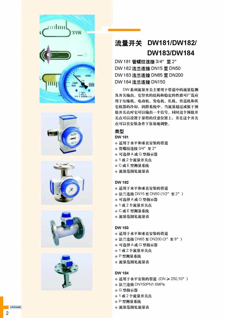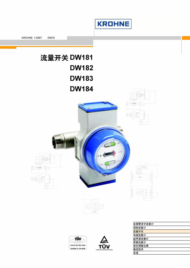 100%原装现货 科隆 KROHNE DW183 流量开关 楼宇自控品牌直销中心